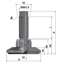 Der wartungsfreie Nivellierfuß JCMHD 100C-S12-HSD110 ist stufenlos über das Feingewinde höhenverstellbar und bis zu einem gewissen Grad neigbar, was die präzise Montage und Ausrichtung vereinfacht.