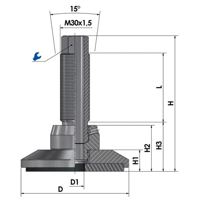 Os pés para máquinas sem manutenção JCMHD 100C-S6-HSD70 com placa antiderrapante são ajustáveis em altura infinitamente ajustável através da rosca fina e podem ser inclinados até certo ponto, simplificando a montagem e o alinhamento precisos.